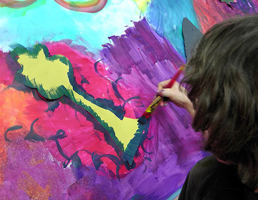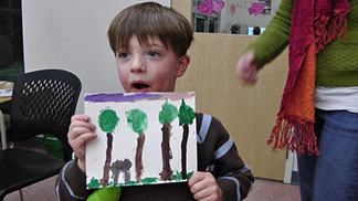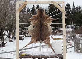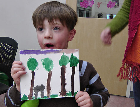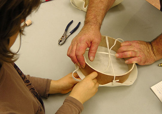 Together with architect Peter Gamble we built a drum from forest wood and animal skins. The children learned all aspects of drum making, from preparing a deerskin, to stretching the drum, to painting it and playing it.