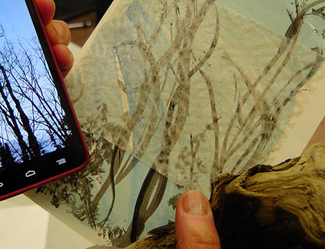 Patricia Ullman led us in a visualization and meditation on the subject of the forest. We then walked in the forest and created photos, paintings and prints with artist Melinda Spooner based upon our experience of the forest.