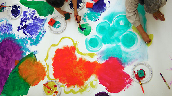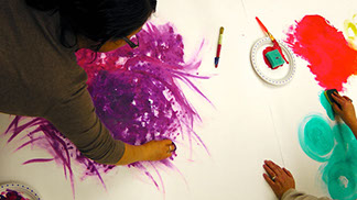 We learned to create short video sketches with documentary filmmaker Ariella Pahlke and created a mural painting based on the forest.