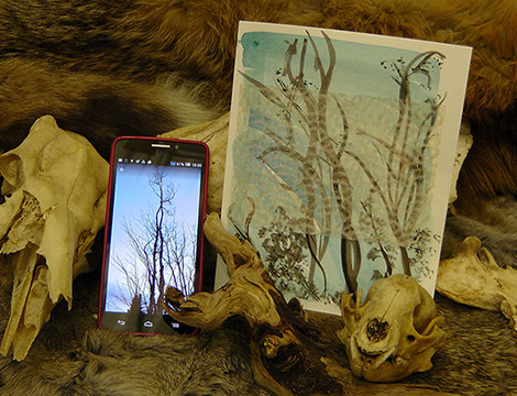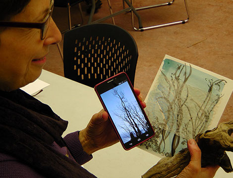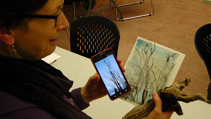 Patricia Ullman led us in a visualization and meditation on the subject of the forest. We then walked in the forest and created photos, paintings and prints with artist Melinda Spooner based upon our experience of the forest.