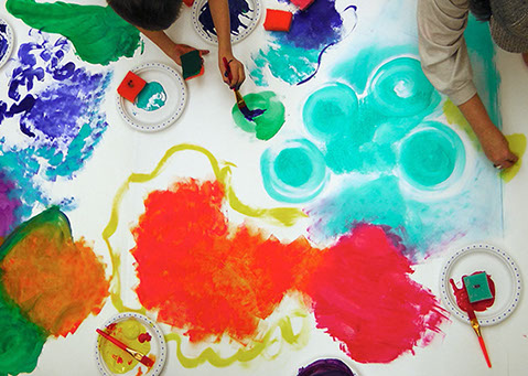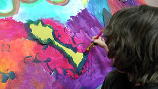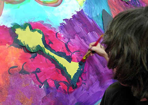 We learned to create short video sketches with documentary filmmaker Ariella Pahlke and created a mural painting based on the forest.